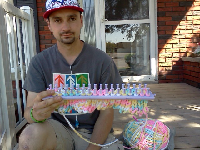 He learned how to knit this winter, taught by a kind staff member at his house, but traditional knitting was tough going, and painstakingly slow. A few weeks ago I bought him a sort of loom that he can knit with. He just finished his third baby blanket – a perfect size for a stroller or car seat – and he already has two expecting couples in mind who will receive blankets as gifts. He plans to sell the rest.